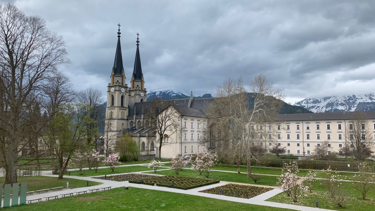 We vertrekken vanuit Wenen westwaarts in de richting van Zwitserland waar we tegen het einde van de week willen aankomen. De overgang qua temperatuur is schokkend. Van 25″C naar 10″C. Dat is even wennen. Daarnaast spettert het waardoor we weinig zin hebben in een fiets- of wandeltocht. Vandaag rijden we dus een flink stuk. Na een uurtje stoppen we in Mürzzuschlag. Een klein maar kleurloos dorp.