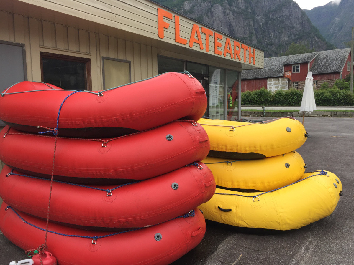 Om 14:00 melden we ons bij Flatearth voor 2 uur raften. De bootjes liggen al klaar.