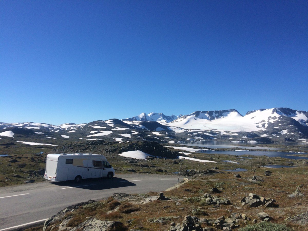 We rijden onze 10.000 ste kilometer met de camper. En dat hebben we natuurlijk groots gevierd. Boven op de Sognefjellvegen parkeren we de camper en maken we een fietstocht over een onverharde weg.